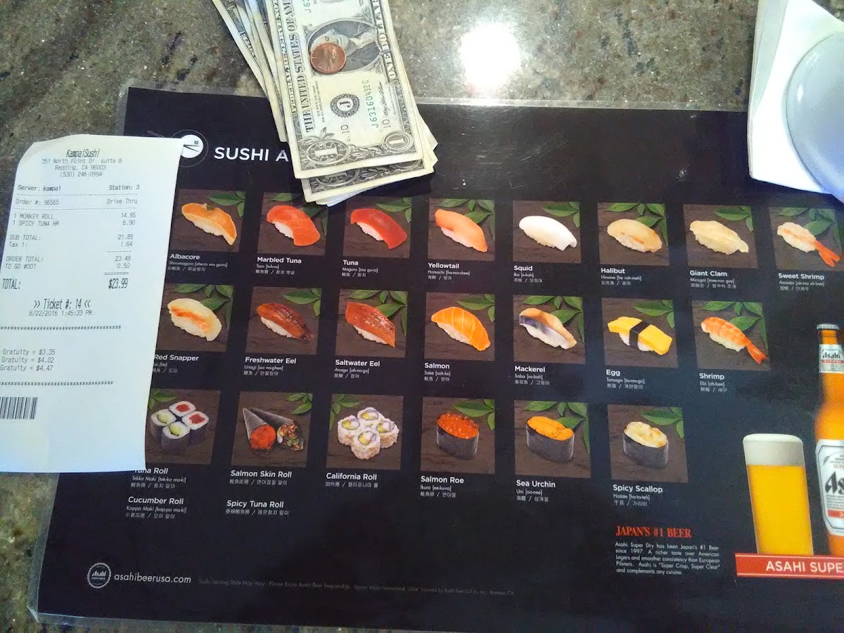 The menu at Kampai is thoughtfully curated, showcasing a variety of exquisite offerings that include Sea Urchin, Spicy Tuna Roll, California Roll, and the much-loved Halibut. Each item is crafted with care, ensuring a delightful dining experience.